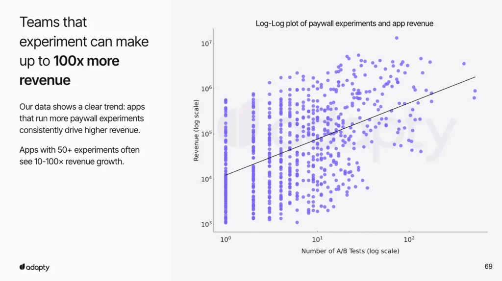 Apps running 50+ experiments annually see 10-100x revenue growth because experimentation compounds across all trends. Each test improves your understanding of flexibility-first users.
