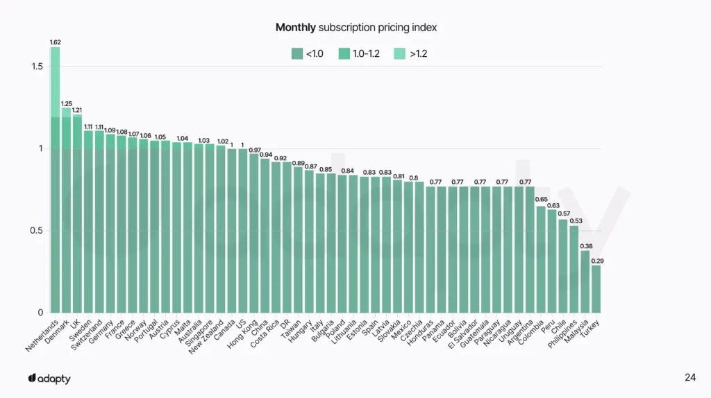 Adapty Pricing Index insights (US = 1.00):