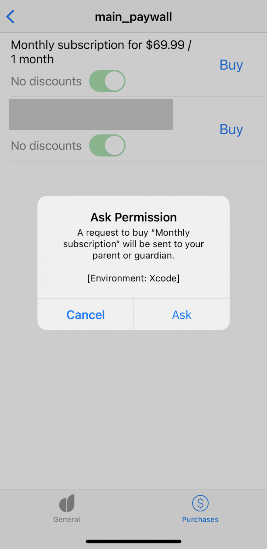 To do this, select Editor → Enable Ask to Buy, restart the application and try to buy something. You will see the alert with the option to request permission to purchase.