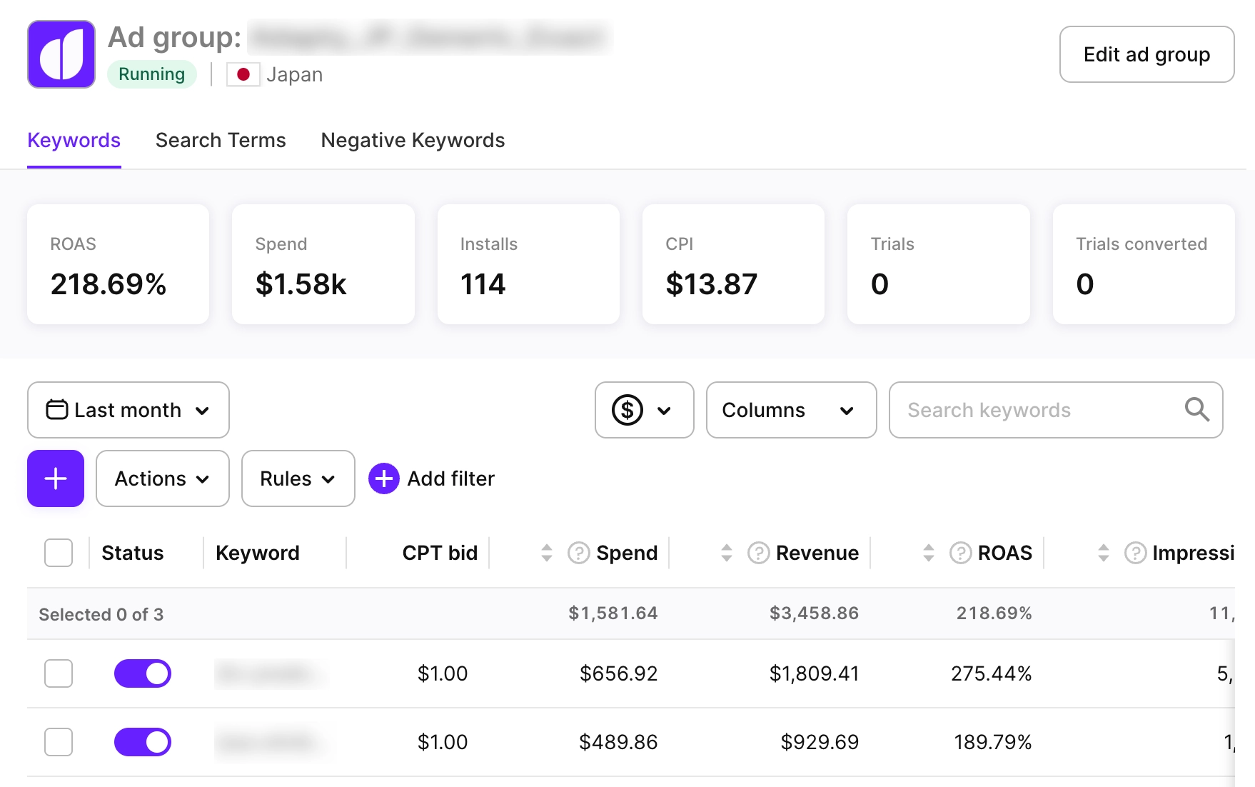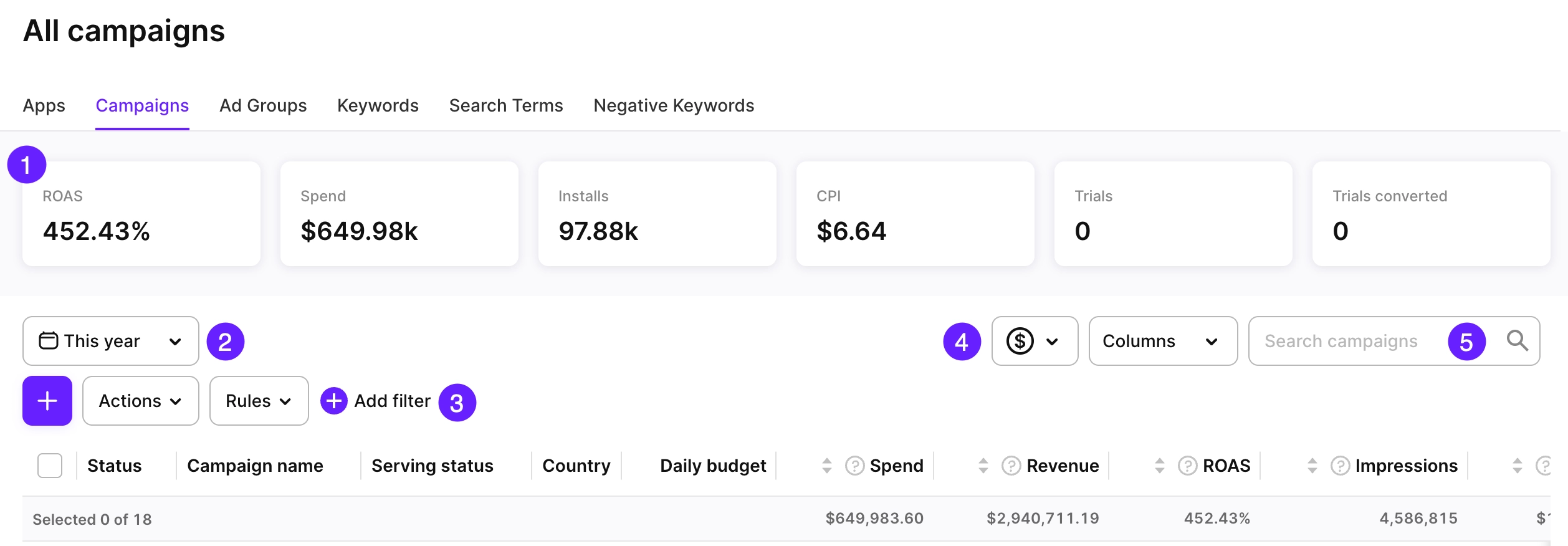 In Apple Ads Manager, you can evaluate how your ads perform on several levels.