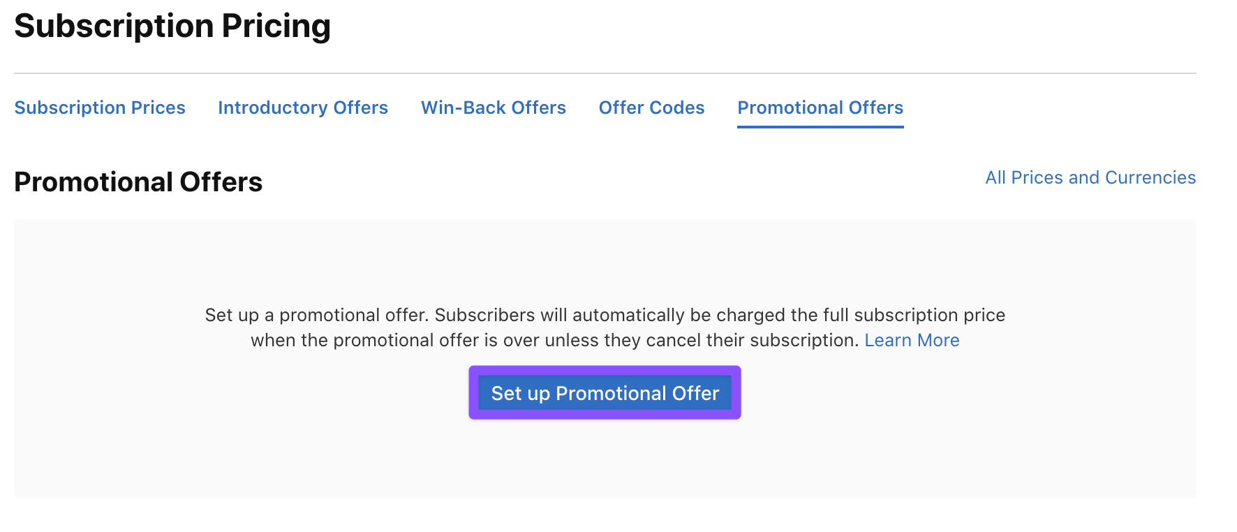 - Click View all Subscription Pricing and switch to the Promotional offers tab. Click Set up promotional offer.