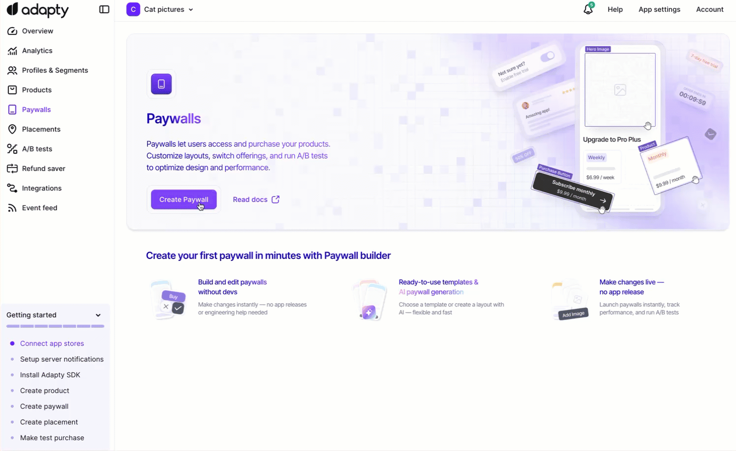 - If you have a custom paywall you want to use, see our guides for implementing in-app purchases with Adapty for your platform: