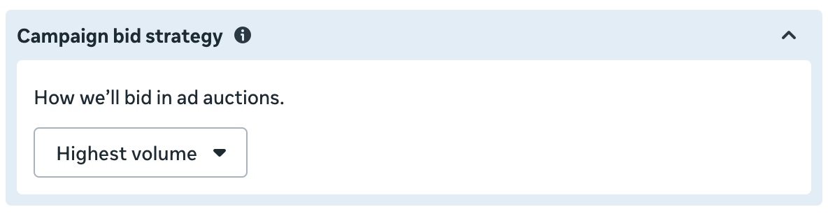 - Highest volume (default): The easiest option to get started. If you select this, you let Meta optimize the click cost to get the best results for your budget.